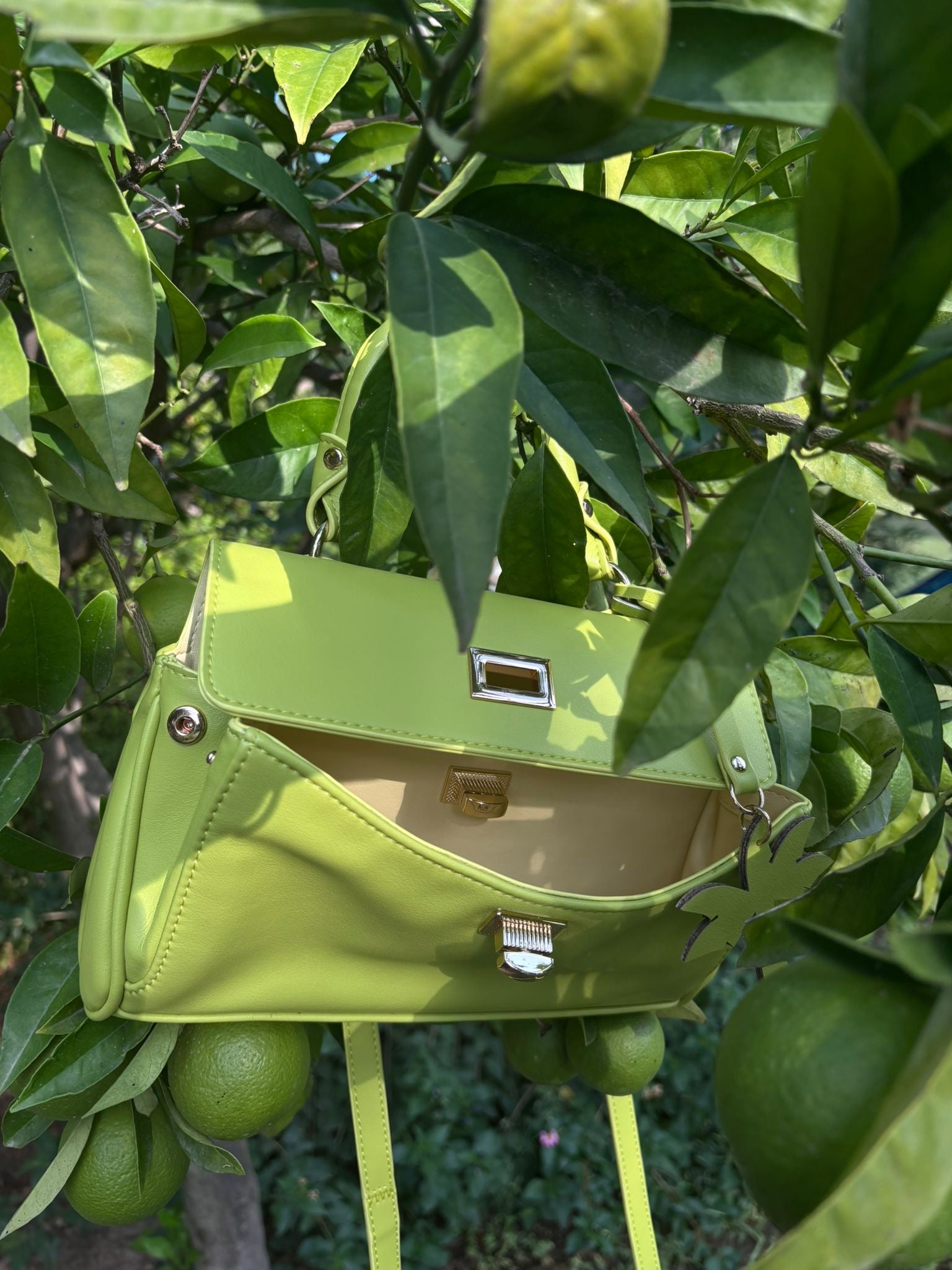 - 100% vegan leather, bright pistachio green, soft leather